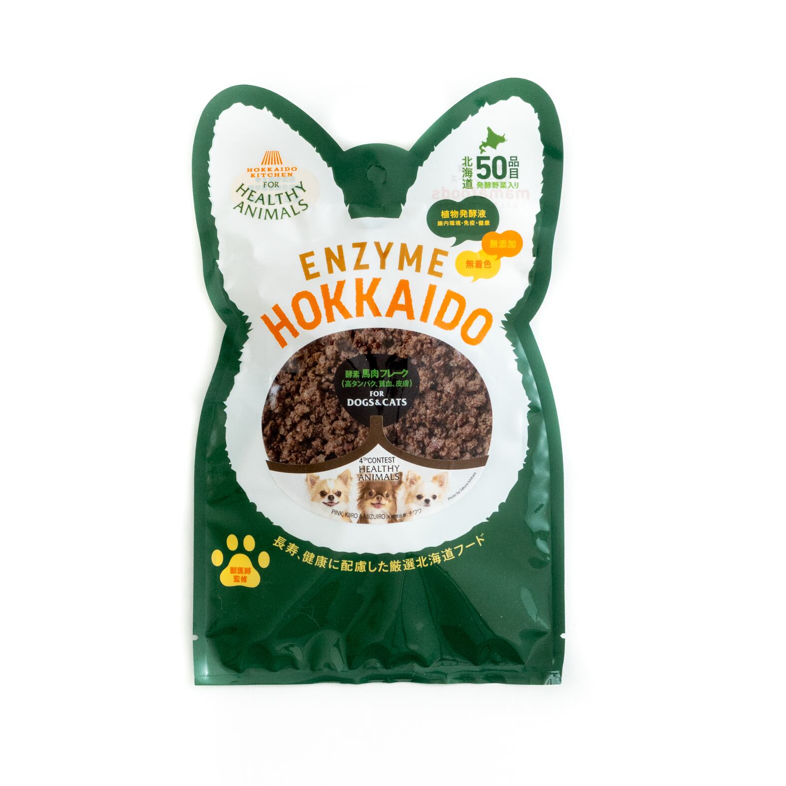 大切なペットの健康を考え、北海道産植物発酵酵素を配合した健康でおいしいフードです。