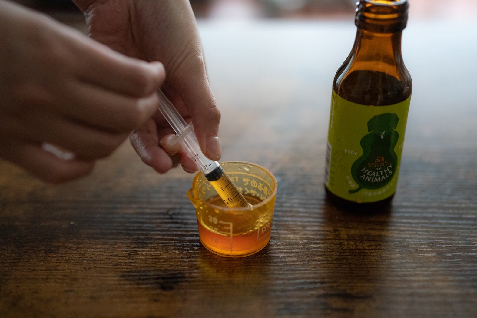 原液そのままスポイトで口の横から飲用させるか、そのままフードにふりかけたり、原液をお皿に入れてお与え下さい。